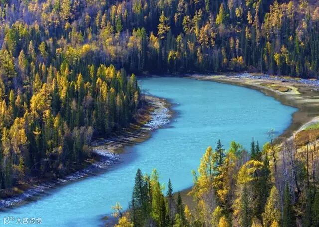 一进入9月,喀纳斯便进入了纯金的时节。天高云淡,蓝天如洗,层林尽染,满目流金,深绿的山坡上透出一片片黄枝红叶相间、青山白雪相连的色块,湖畔的白桦、红松、冷杉等树木会以金黄、橙红、黛绿等交叉的色彩,烘托着山顶耀眼的雪色,投映在翡翠石般的喀纳斯湖上,光彩夺目,令人沉醉。此时也是摄影的最佳时节。
