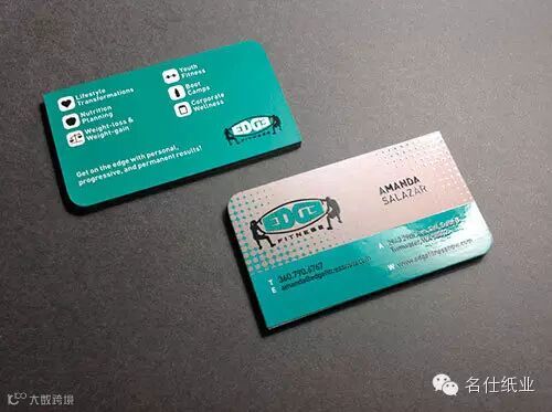 A custom die-cut business cards with UV spot on both sides.