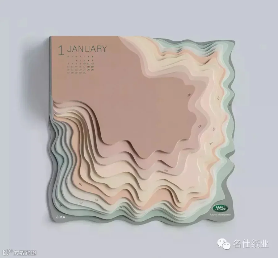 汽车品牌的纪念品,也不一定以汽车作为设计蓝本。英国汽车品牌Land Rover就邀请设计师Zeynep Orbay,为他们打造数款精美纪念日历,Zeynep Orbay选用各种大地色系来分饰每个月,空白处可以书写一些当天备忘,由高到低排列,越到年底纸张空间就越大,对于国外每年年底的节庆季Holiday Season 来说,刚好可以记录各种备忘,真是再适合不过了。