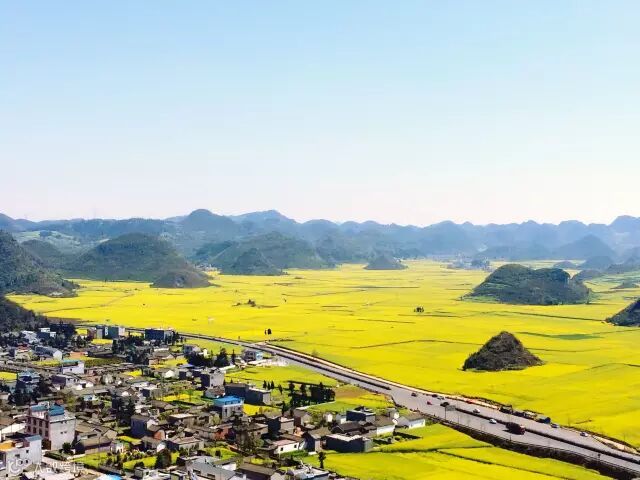 罗平是布依族人的主要聚居地,别致美丽的吊脚楼、独特的民族风情、精美的民族服饰、刺绣、蜡染、竹编等丰富多彩的民族工艺品,分布在罗平的翠林秀水间;早春时节,油菜花开,不同于清新秀美的婺源油菜花,这里的油菜花漫山遍野,郁郁葱葱,辽阔无垠——湛蓝的天空下一片金色的花海,偶尔飘来悠扬的笛声,让你沉醉于在花海中沉浮中的罗平城,仿佛置身大海中的岛屿。