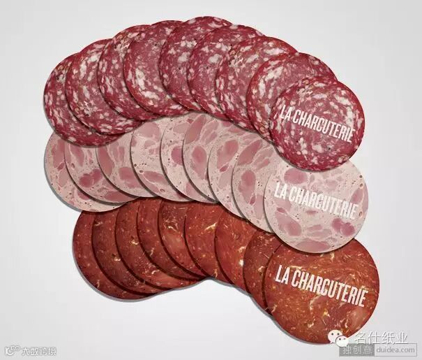 La CHARCUTERIE是加拿大温哥华一家熟食店。名片设计看起来像冷盘,然后串成网类似的方式像腊肠和其他腌肉一样挂熟食店。La Charcuterie is a deli/restaurant hybrid well known around Vancouver for serving up sandwiches filled with deli meats. To play off this, business cards were created to look like cold cuts then were strung in netting similar to the way salami’s and other cured meats are hung in delis. (Advertising / Design Agency: Rethink, Vancouver, Canada)