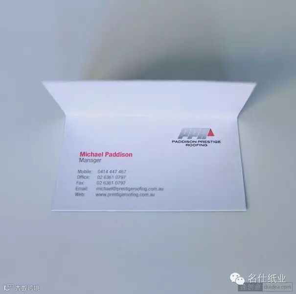 澳大利亚Paddison Prestige Roofing屋顶修理公司创意名片A clever business card for a roofing company which looks like a roof when properly placed. (Advertising Agency: Rectangle, Sydney, Australia)