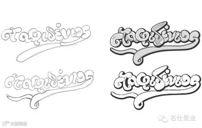 标 志总是由草图开始,以下是设计公司为其构思标志时所画的一些草图,通过字体的设计形成一种童真有趣的感觉,同时利用颜色,将品牌名称分成两部分,在希腊语 中,“Stafid”即葡萄干的意思,而“enios”则是“公司”的意思,这种区分使到儿童一看到这个词就立即可以知道具体的产品。