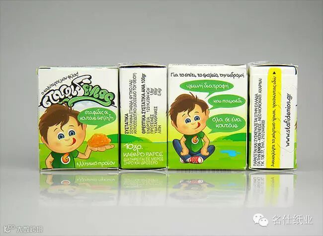 Stafidenios是一款面向儿童的葡萄干产品,在希腊生产,为了适应儿童的小手,其包装尺寸也显得相当迷你型。而其特色是每个包装展开后都可以重新折叠 成不同形状的可爱形象,并不需要用到胶水及剪刀。品牌形象及包装由雅典的Matadog Design设计公司设计。