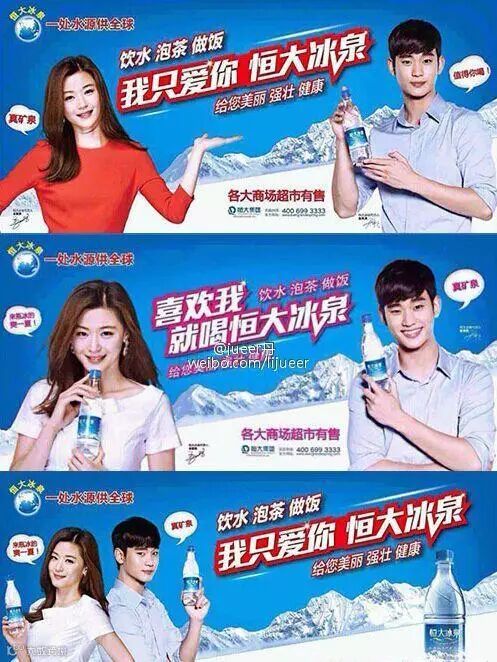 2014 年金秀贤、全智贤因代言中国恒大矿泉水广告,成为韩国网民批评的对象,因为该广告中出现了“长白山”字样。6月22日,金秀贤、全智贤向中国恒大集团提出 了解除广告合约的要求。但是6月25日金秀贤即宣布将继续担中国矿泉水品牌形象代言人,6月27日全智贤也宣布如期拍摄引起争议的广告。