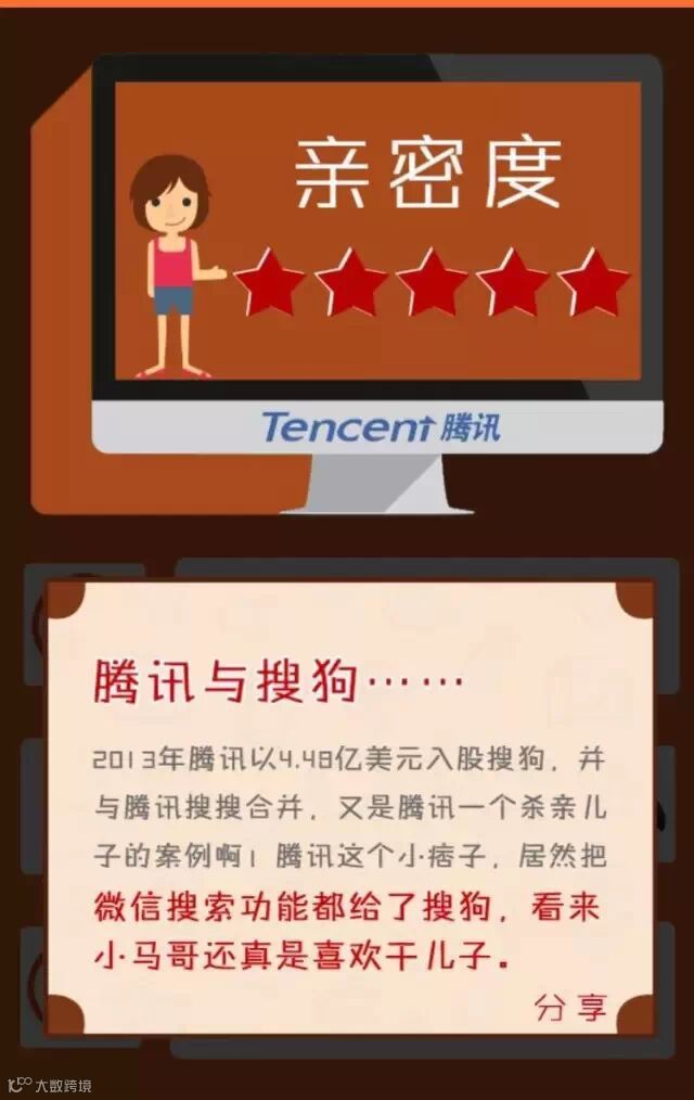 据不完全统计,2014年共有94家公司与BAT发生过“关系”。但俗话说得好,亲疏有别,BAT儿子虽多,谁是最亲的?