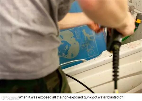 6.回去冲洗网版,这时被图案遮挡到的部分就会被水冲走啦。