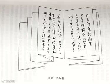 经折装 又叫梵夹装、折子装。将图书长卷按一定宽度左右折叠起来,加上书衣,使之成为可以随时展读的册子。历代刊刻佛经道藏,多采用这种装订形式。古代奏折、书简也常采用这一形式(图3)。