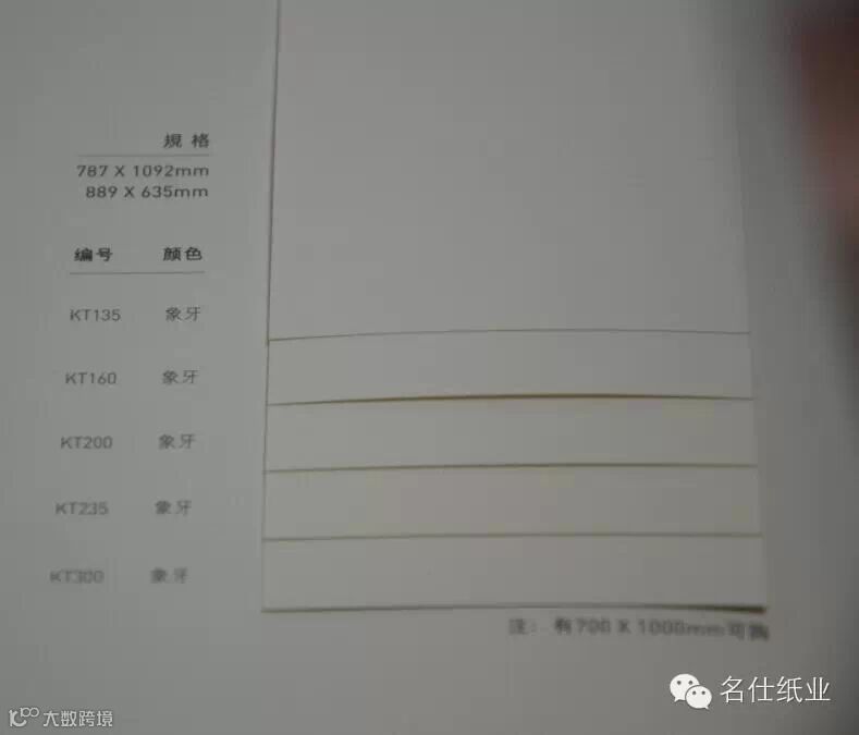 我们提供多款编号和规格供你挑选。名仕凯特颜色是象牙白,规格有787*1092和889*635,五种编号分别是KT135、160、200、235、300