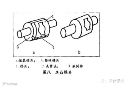 该工艺首先要根据设计的图形制作一套凹凸印版(阳模和印模),利用凸版压印机较大的压力,在已经印刷好的局部图形或在空白处,轧压出具有三维空间的图形,使印品具有立体效果,整个结构上也具有丰富的层次,增添更多、更强烈的艺术性。