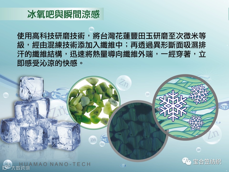 冰氧吧的功效:1瞬间凉感,2长效低温,3清新护肤,4消除异味。冰氧吧与薄荷纤维的相互结合,穿上之后肌肤瞬间能感受到冰冰凉凉的触感,不仅舒适,还能达到3A抗菌效果哦~~~~