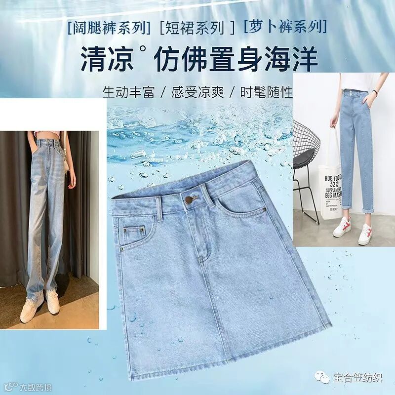 这次的新品是经过混练技术添加进冰氧吧纤维中,同时还在面料中添加了薄荷纤维,从而达到抗菌、清爽凉快的效果!春夏做裙子,阔腿裤、热裤的不二之选哟~