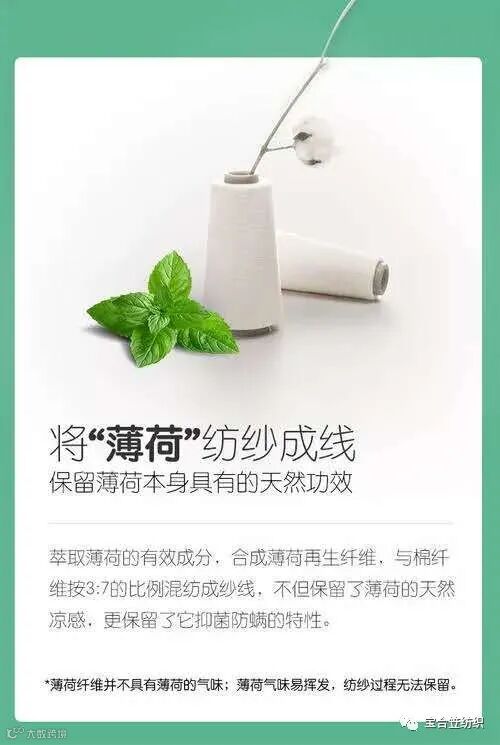 薄荷面料的优点:1抗菌除臭,2天然凉感,3功效持久,4良好的可纺性