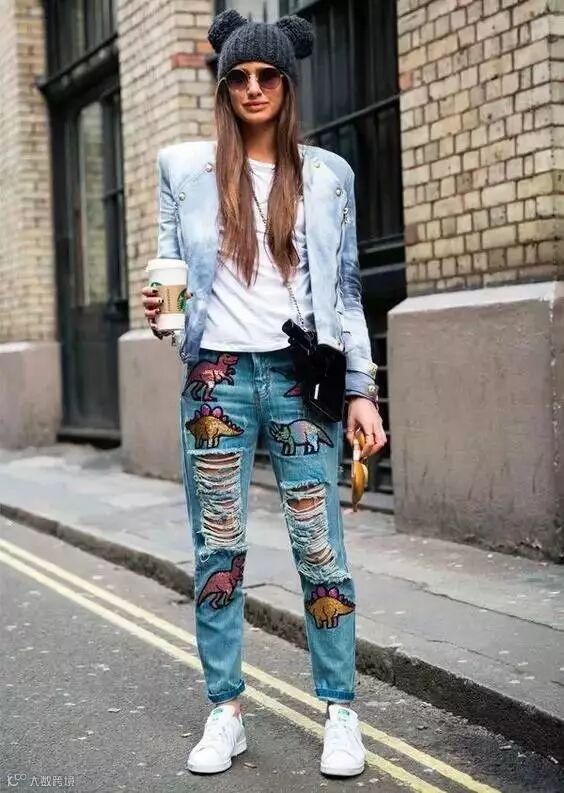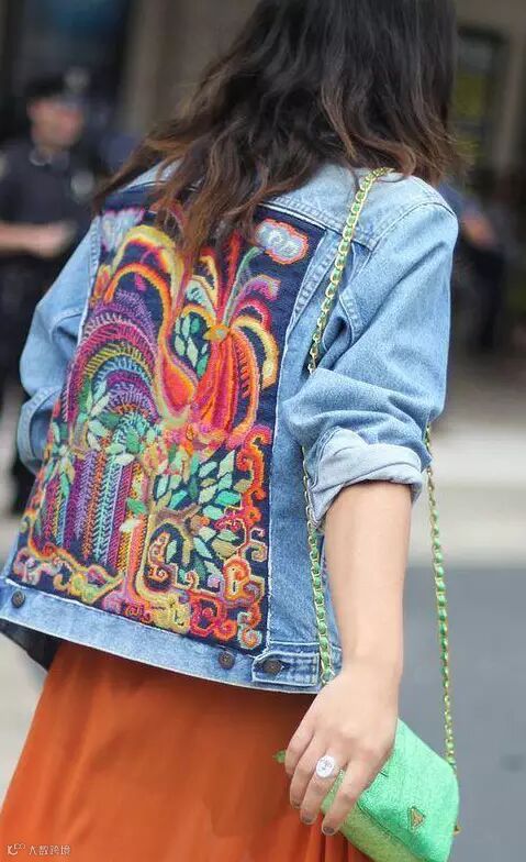 内搭一件简单的白T或卫衣就已经足够好看啦。而且刺绣牛仔每过两三年就要流行一次,可以说是经久不衰,备上一件准没错!