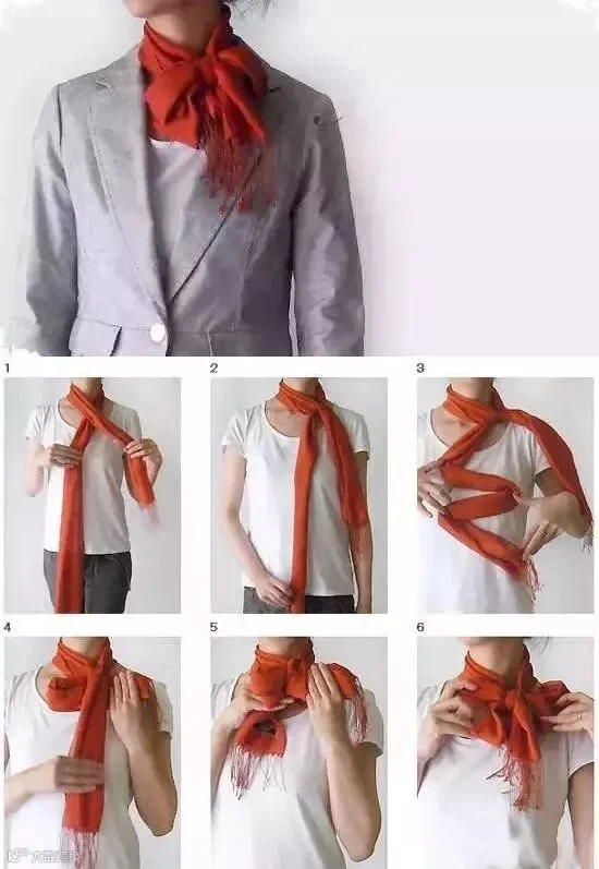 对于长条的丝巾,可以对折起来围,再打一个漂亮的结就可以了