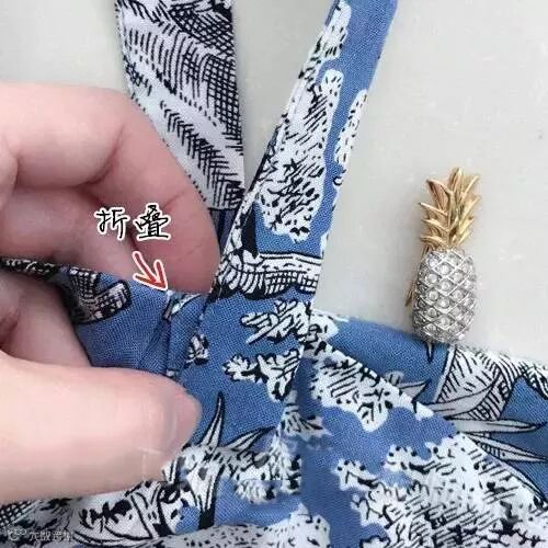 此时,我们依然可以用小胸针来调整这个肩带。看下图,只要把肩带末尾折叠下。