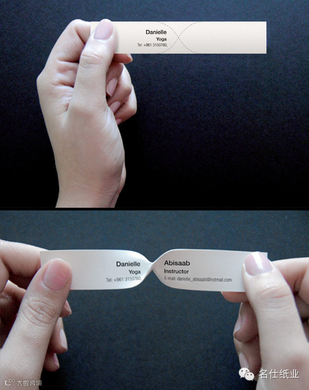 扭曲吧,名片!设计者是一名瑜伽教练,若想完整阅读名片上的信息就得扭曲它的身体。
