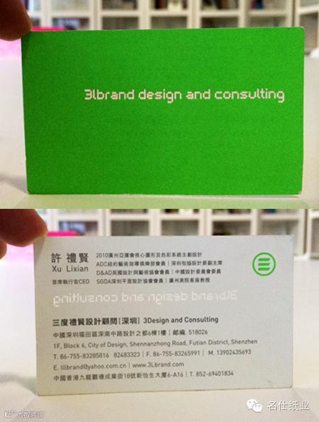 喜欢名片,喜欢名片触手后的质感,喜欢各种名片印制的方式,要用最好的品质设计和制作一个东西。你印刷10000张极其低劣的名片发出去,会被扔进垃圾桶9900张,为什么不印刷2000张好品质的名片然后都被保留呢?名片绝对不仅是简单传递一个电话和地址功能,他上面附加很多情感的、微妙的东西,需要有品位的你慢慢的品味。并且不仅是老板要有一张好名片,你的公司也需要一套好名片,这样你的员工会有荣誉感,接收名片的客户会对你的公司肃然起敬。