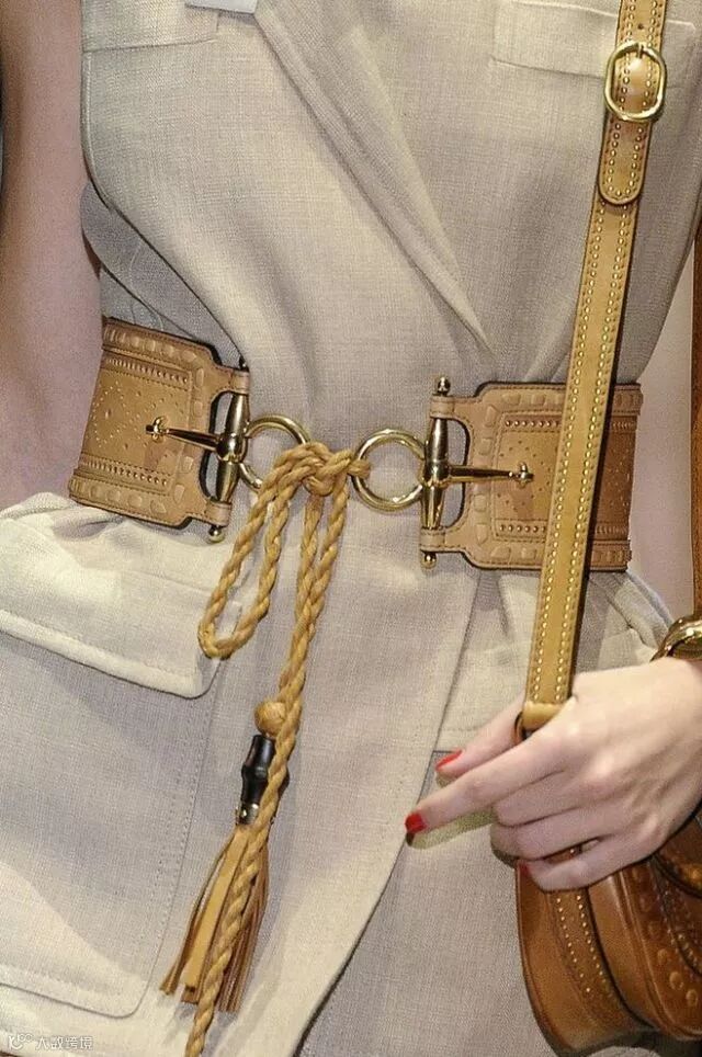 另外,现代说起腰封,更常是系在上身人体腰部的腰带,材质有很多,通常材料为皮、帆布等等。腰封对女人而言绝对是必不可少东西,是体现纤细柳腰的神器,是搭配衣服的利器,在各种连衣裙等服装上均适合搭配。