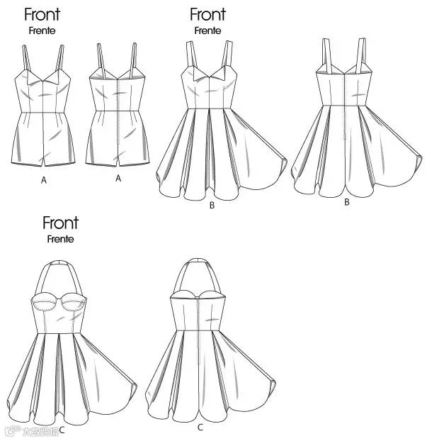 导读:来源:服装云教育 ID:fuzhuangjiaoyu 时装款式图 连体裤(裙)款式合集图片综合整理自网络,版