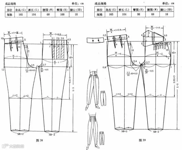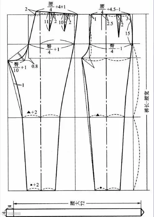 ①中档位下移,即中档位=臀围线至裤口线1/2处。