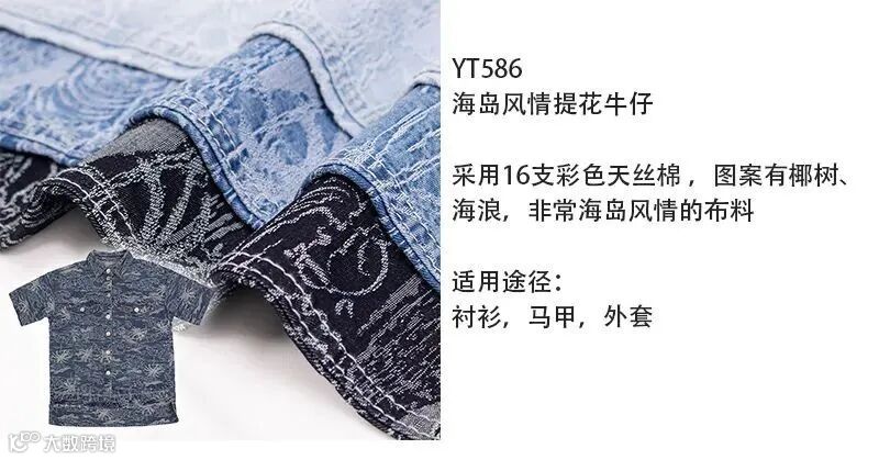 2)提花牛仔款式种类都十分丰富,只要是设计师能设计出的图稿,它都可以在提花牛仔上实现,可以根据不同的面料底布,纺织出不同的花型,形成不同的颜色明暗对比,每个人都可以在其中找到自己喜欢的风格和图案。