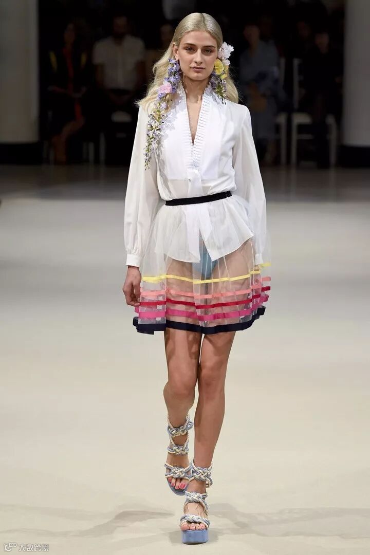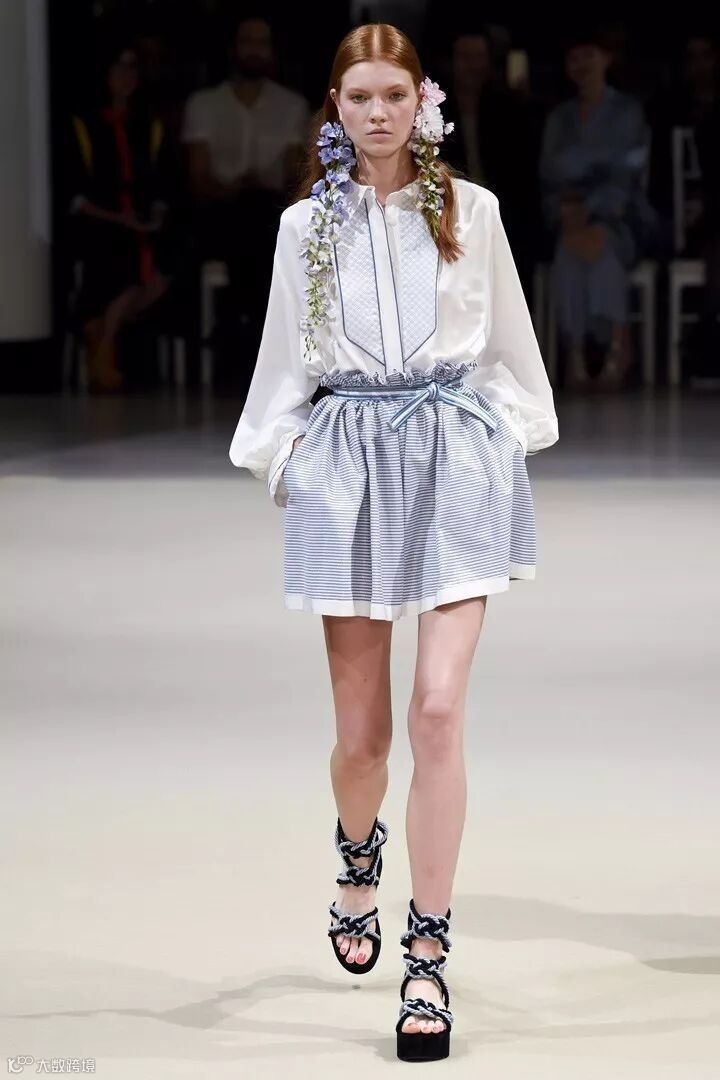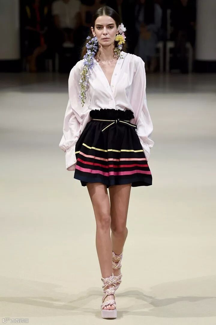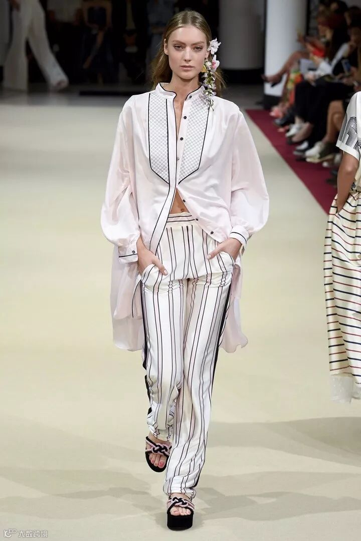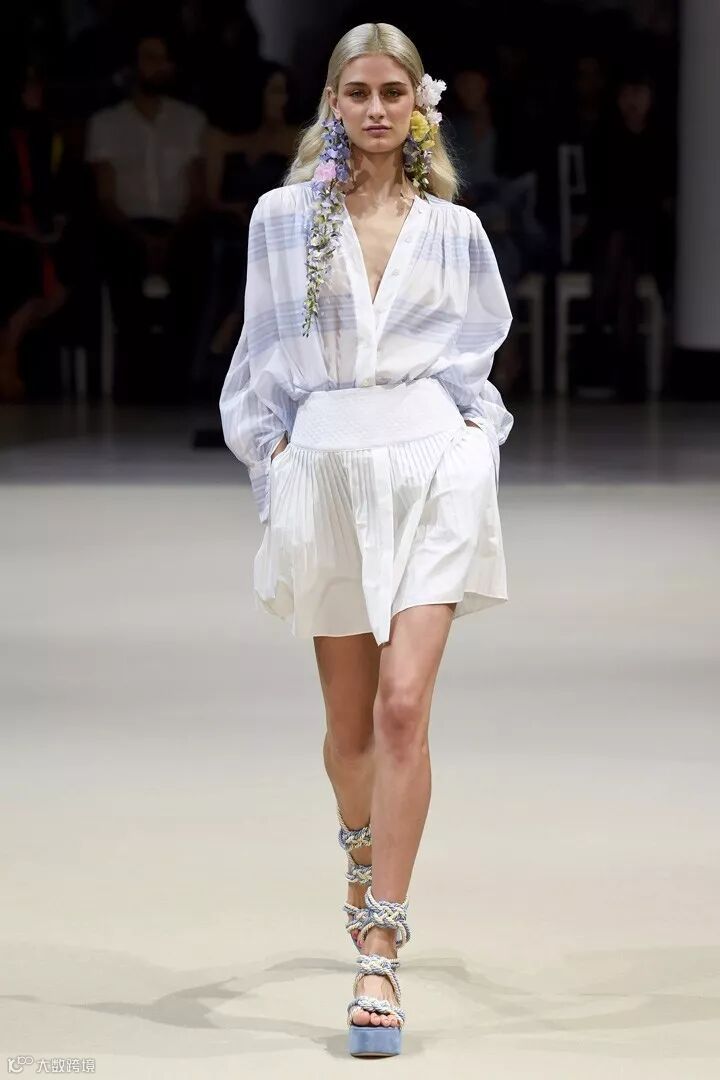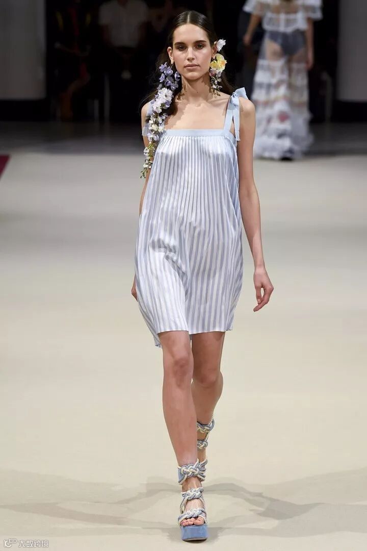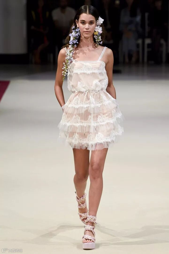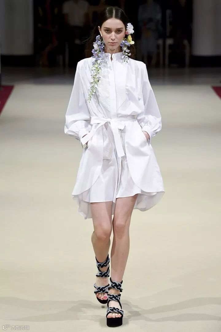 法国高定设计师品牌 Alexis Mabille(艾历克西斯·马毕)于巴黎时装周发布2018春夏系列时装秀,本季系列被称为“巴黎之花”,每一款的设计中都加入了花卉的耳饰搭配,清新而自然。在色彩设计上,糖粉色、奶油色、浅蓝色成为贯穿整个系列的主要色彩,同时结合轻盈的棉、丝绸及府绸的材质,打造出一系列的睡衣风款式、裙装、衬衫等日常着装,少女感十足。在细节设计上,加入了褶皱、条纹、荷叶边、蕾丝花边等,彰显设计感。