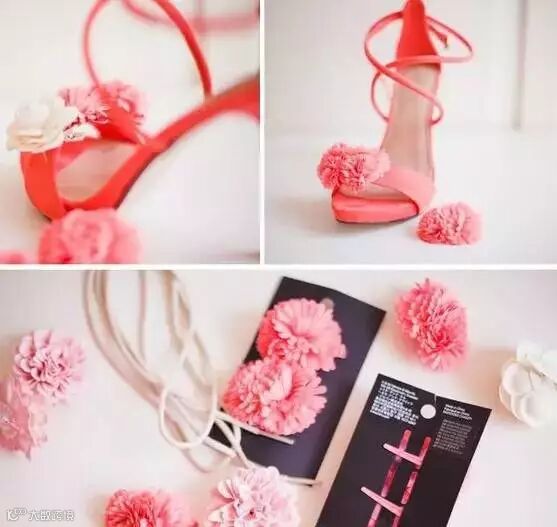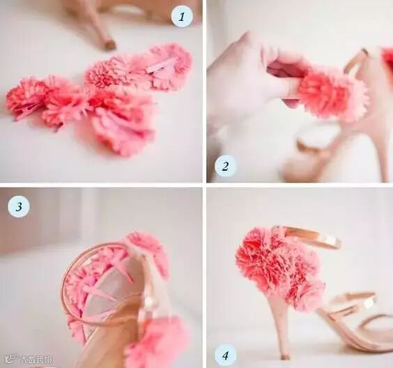 饰品除了可以用来装饰鞋面,还能装饰鞋跟。将不用的花朵发饰点缀在同色系的高跟鞋上,俨然童话中走出的公主一般。