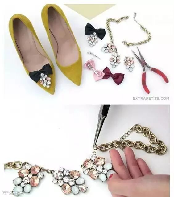 感觉过气的项链、手链、发饰可千万别扔,将它用胶水固定在鞋面上别提有多好看了。