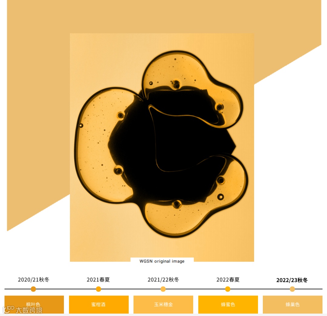 色彩要点:黄色在2022/23秋冬将起着关键作用,更添 活力温暖质感。呈金黄色调的蜂巢色是本季赭色系的一 部分。