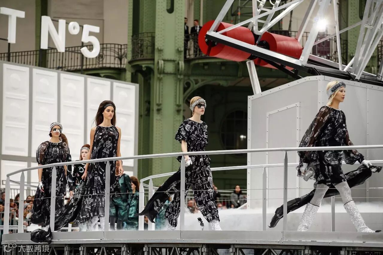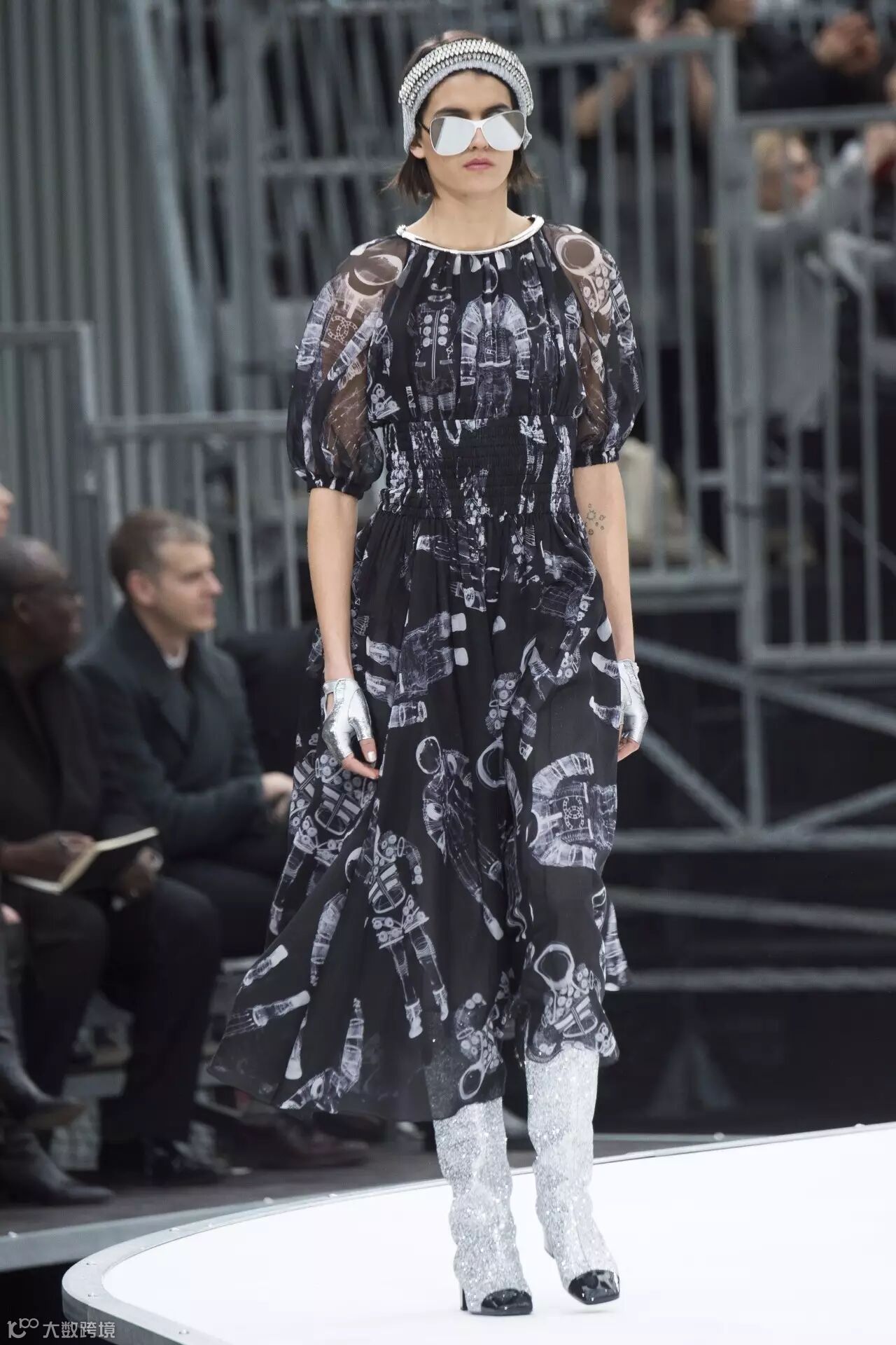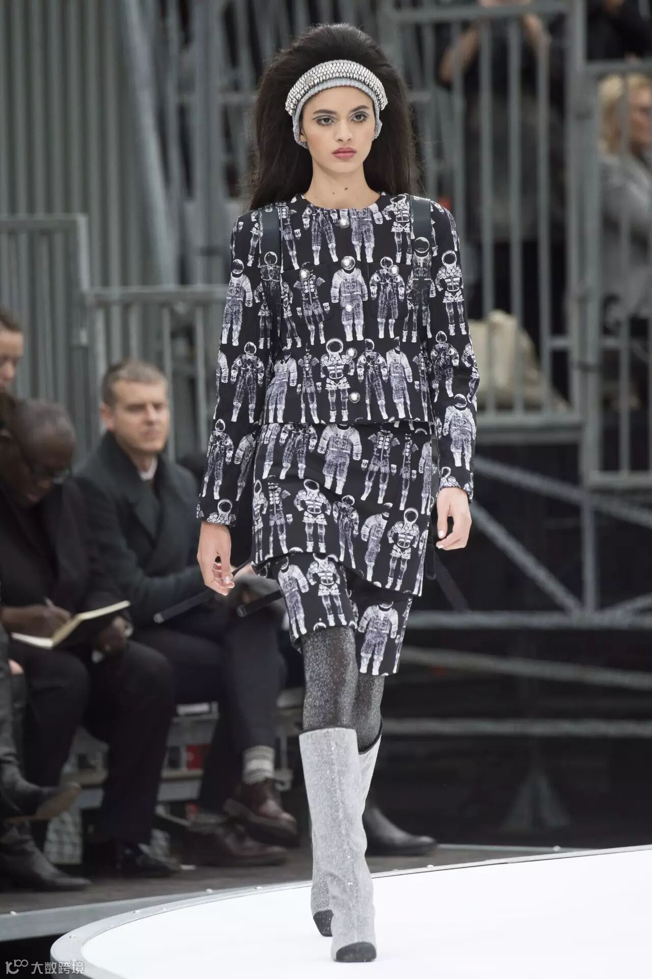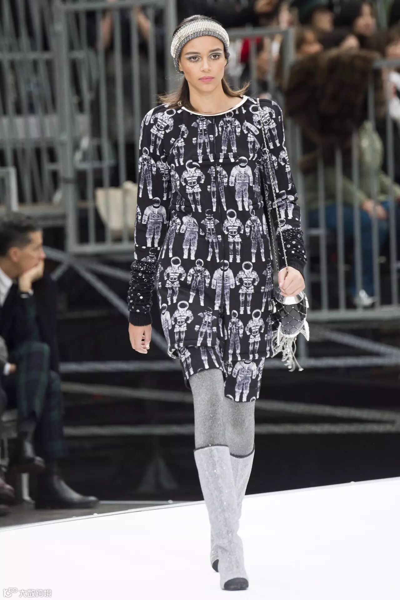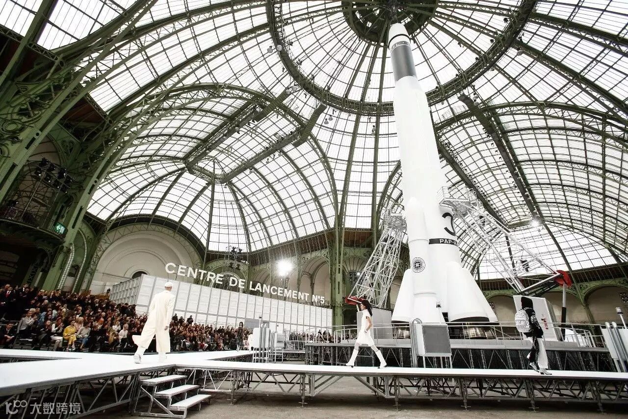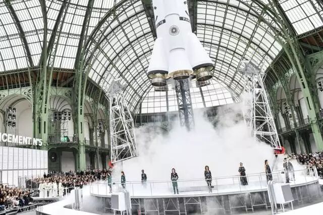 在 Chanel最新 2017 秋冬系列时装骚中,老佛爷Karl Lagerfeld除了带来目不暇给的时装精品外,是次的表演方式更加令人惊讶,把拥有 120 年历史的 Grand Palais 粉饰成火箭发射场,当中还设置了一座实物原大的巨型 Chanel 火箭,在 Elton John 的名曲《Rocket Man》下开始了这别具一格的时装骚,在最后一刻这 Chanel 火箭还真的点火发射,喷出大量烟花,彷如真正火箭发射的过程,台下嘉宾如 Pharrell、Cara Delevigne 和 Lily-Rose Depp 均看得目定口呆,不得不佩服老佛爷的创意以及执行能力。