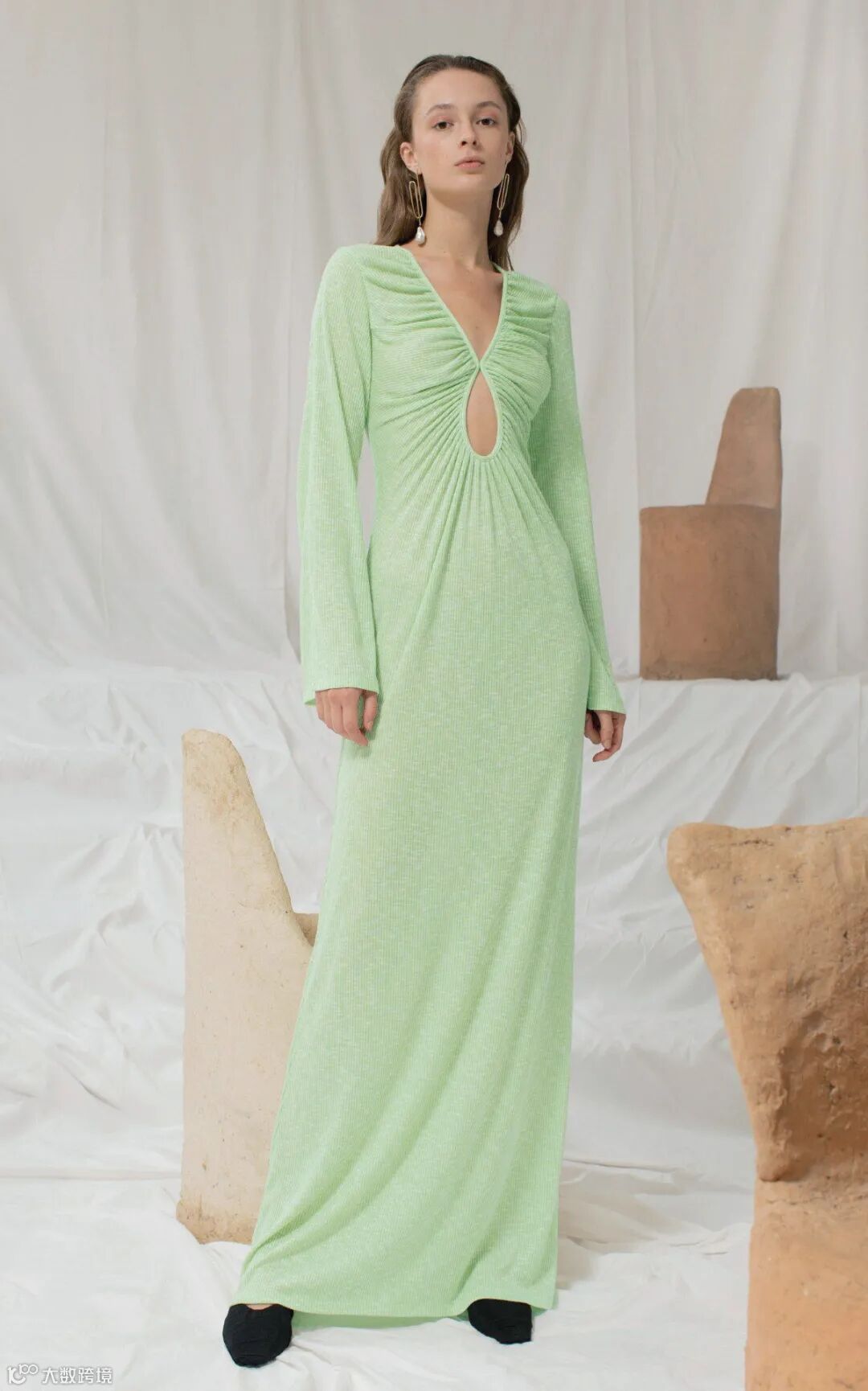 蓝色调的针织服装对色彩特性做出完美诠释。