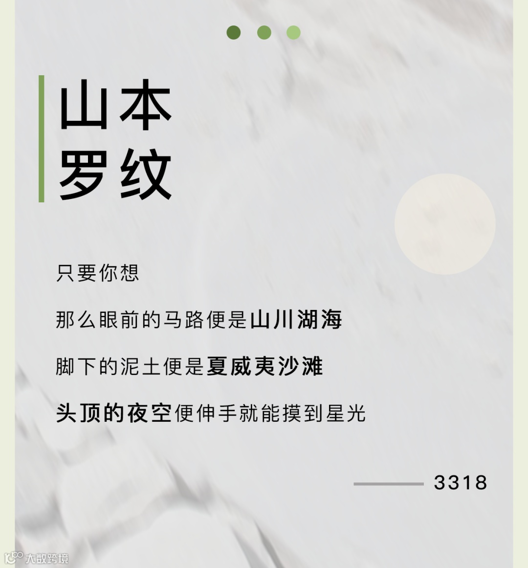导读:只要你想那么眼前的马路便是 山川湖海脚下的泥土便是 夏威夷沙滩头顶的夜空 便伸手就能摸到星光