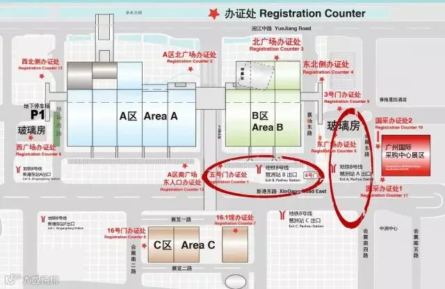 地铁:广州东站乘坐地铁1号线,在体育西路站下车;体育西路站乘坐地铁3号线,在客村站下车;客村站乘坐地铁8号线,在琶洲站下车(A或B出口出)。