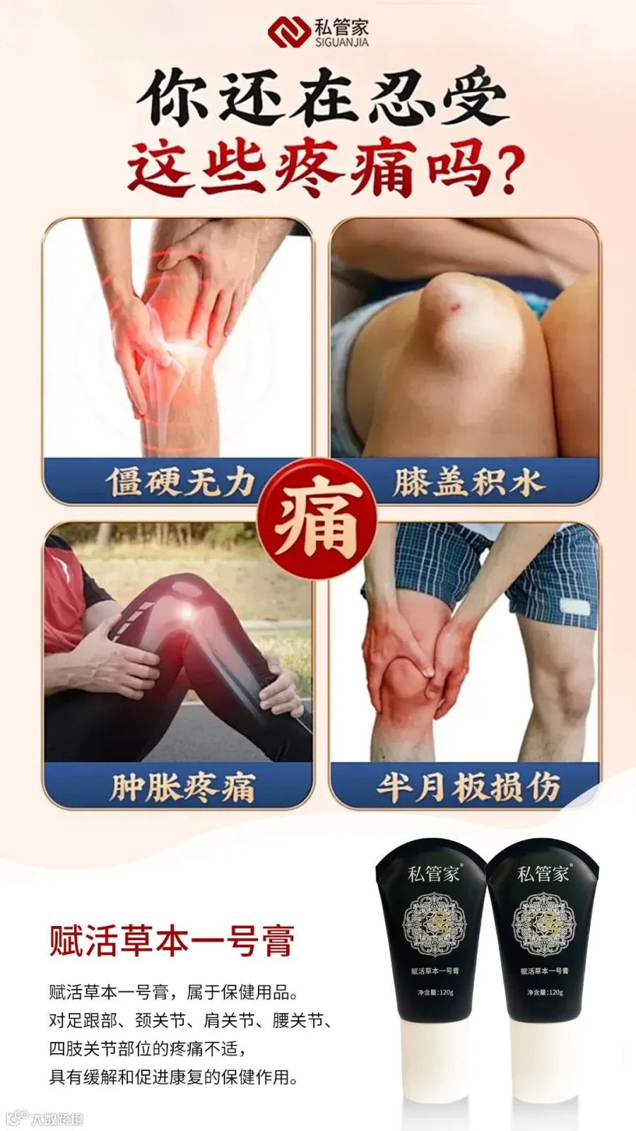 在医生指导治疗的同时,适当的辅助护理能加速康复进程。推荐使用私管家赋活草本一号膏,其精选十余种活血化瘀、利水消肿的中草药成分,采用现代萃取技术,能够深入渗透,靶向作用于膝关节周围。