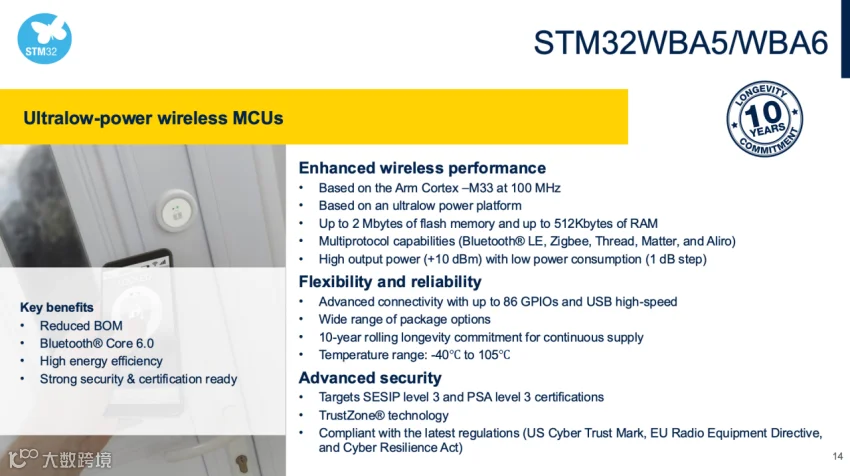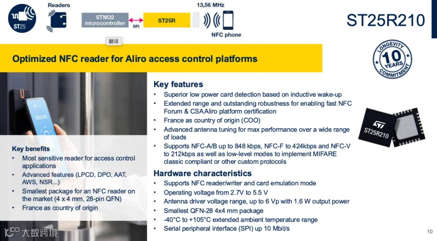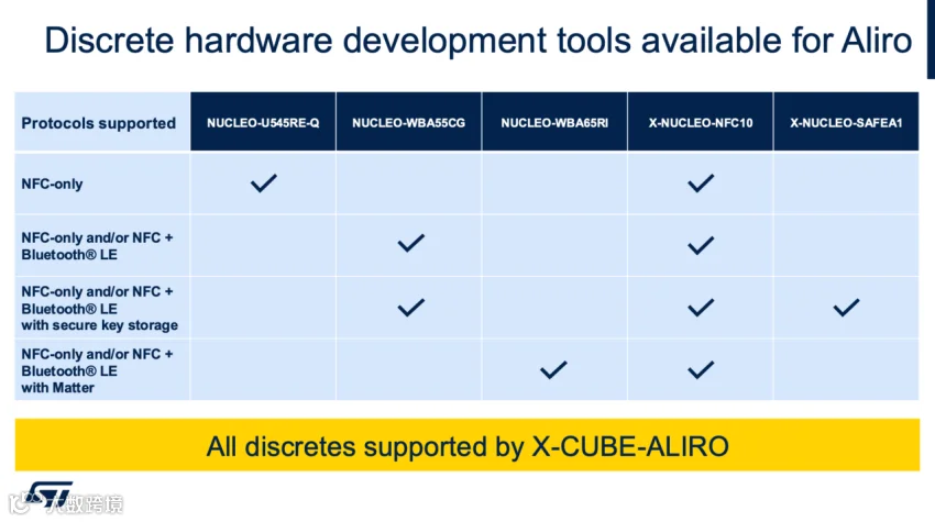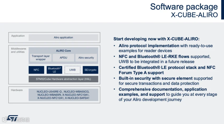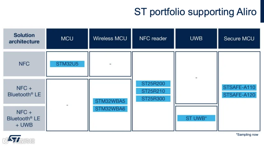 2月27日,在Aliro公布1.0标准后,ST随即发布新闻表示,已准备好为设备制造商提供打造符合Aliro标准产品的一切所需。ST提供完整的连接和安全解决方案组合,支持三种Aliro配置,从仅NFC到NFC+BLE,再到NFC+BLE+UWB,实现免提访问。