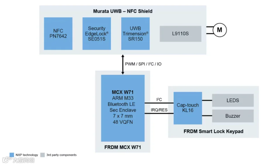 QM35825 UWB SoC通过实现微定位精度和可靠的距离测距,满足了Aliro的精度和安全需求。Nordic的nRF54L系列SoC集成了超低功耗多协议2.4GHz无线电和Arm Cortex-M33 MCU。SoC带来了智能锁所需的超低功耗和安全。它具备安全启动、固件更新和存储功能,并由Arm TrustZone支持的可信执行环境,该系统是带有侧信道泄露保护的加密引擎和篡改检测器。