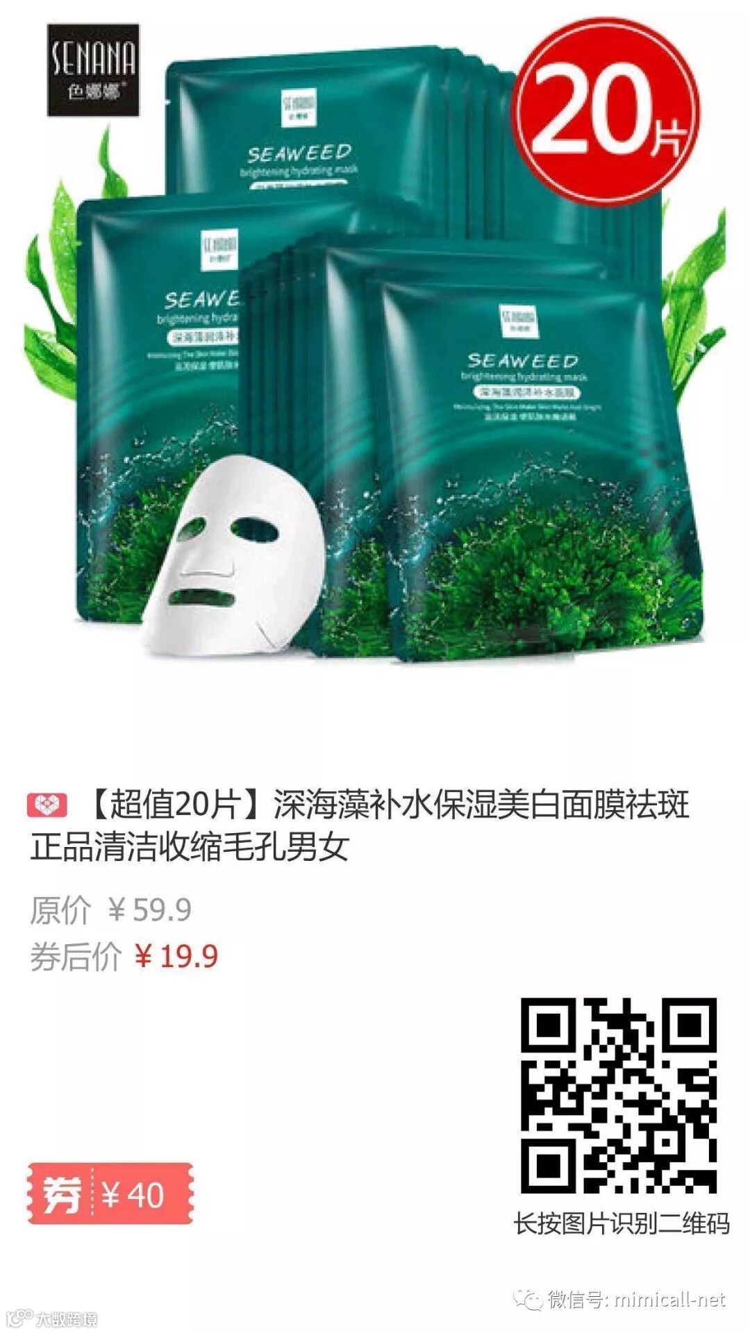 深海藻补水祛斑男女面膜