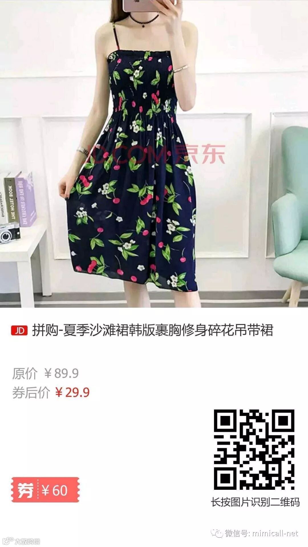 裹胸碎花吊带裙