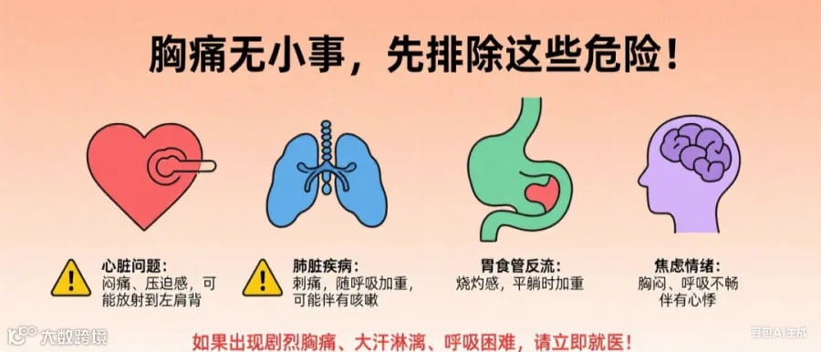 ⚠️ 肺脏疾病:刺痛,随呼吸加重,可能伴有咳嗽