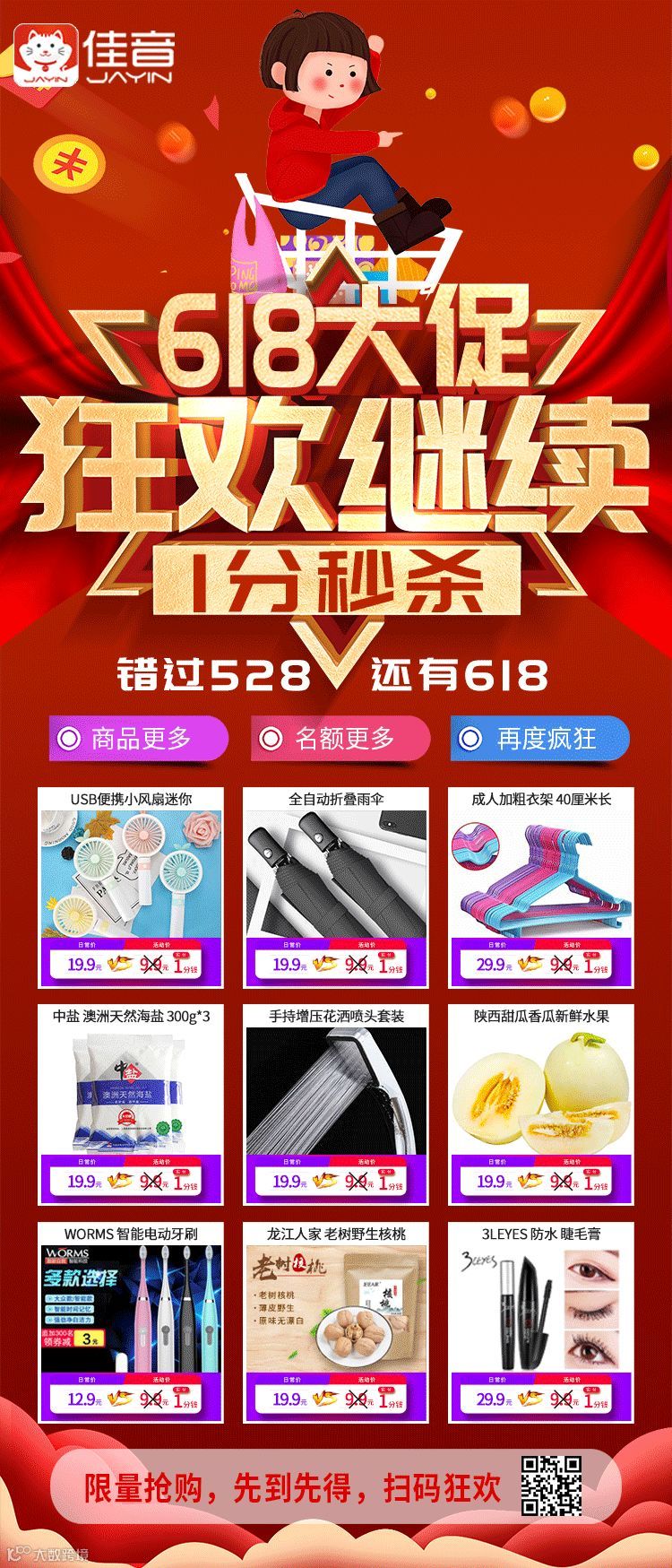 注意!注意!佳音年中大促(6月17日),“1分秒杀”特惠活动又要开始啦!商品更多、福利更大,既不需要绑定支付宝账户,返现也无需抵扣现金券,超级嗨皮!活动限时又限量,拼的是手速,靠的是网速,赶紧下载佳音(邀请码:AAAAAA)蹲点抢货吧!