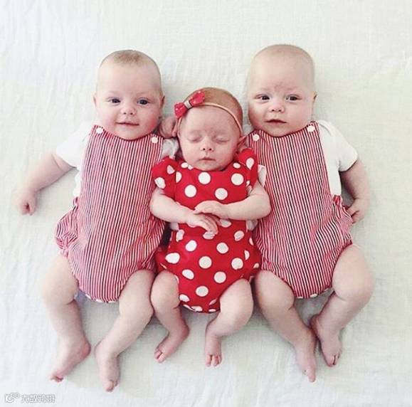大多数时候三个宝宝还是会穿一样的衣服