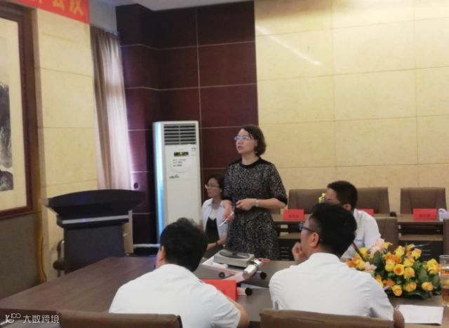 图为昆山市硕霖净化科技有限公司总经理饶卉对1-5月销售完成情况进行汇报及总结