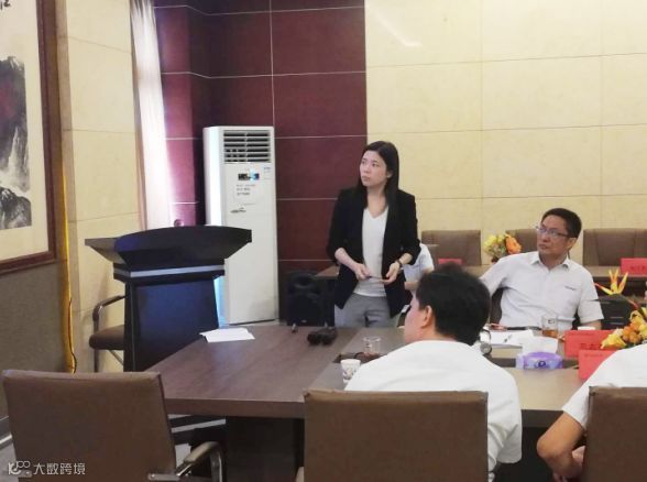 图为外贸部经理陈信芳对1-5月销售情况进行汇报及总结
