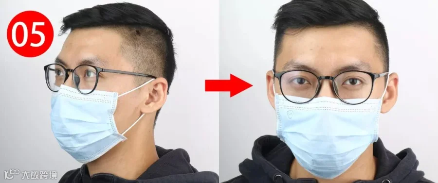 3.让口罩沿鼻子、脸颊、下巴贴合;