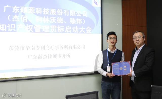 接着在庄重的仪式下,硕源集团董事会秘书钟针接下此次项目聘书,荣任项目管理者代表并发表重要讲话。他强调了企业知识产权的重要性,并表示硕源集团贯标工作的启动,意味着知识产权的管理进入更高层次的阶段。