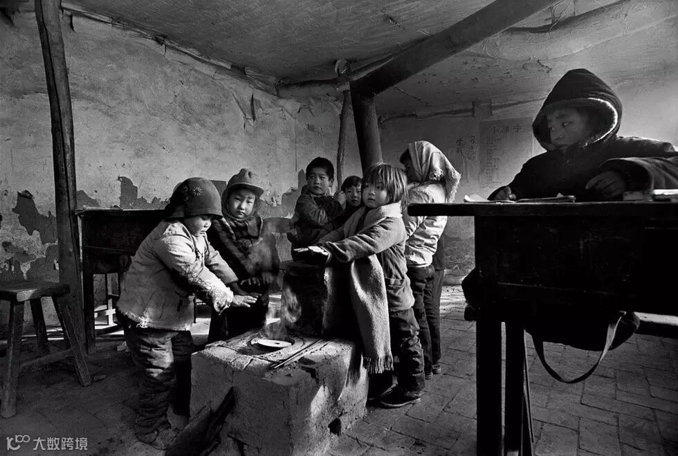 1991年12月,河北省滦平县拉海沟乡大店子村,气温骤降至零下20度,孩子们烤烤冻僵的小手继续上课。解海龙摄