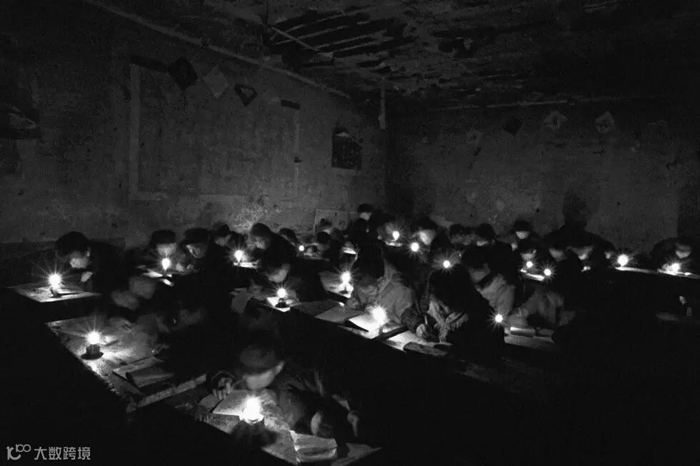 山西省静乐县赤泥洼乡中心学校 这里还没有通电,孩子们在煤油灯下学习。解海龙摄