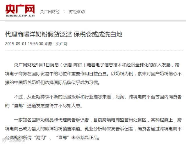 很多假奶粉就是由制假窝点流出到保税区,再通过保税区洗白,号称是海外进口,再挂在海淘网站上,通过物流、小票等一系列造假,最终卖给网购者。