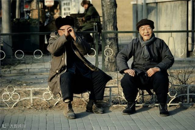 晾晒在椅子上的棉鞋和忙着劳作的老人